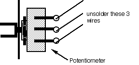 - Carefully unsolder the 3 numbered wires from the potentiometer. It is now disconnected from the transmitter and has no effect on the operations of the model. If there is a trim potentiometer on the selected channel, carefully unsolder the center wire from the trim potentiometer and leave it disconnected. Use 1 piece of heat-shrink tubing to insulate the end of the wire.